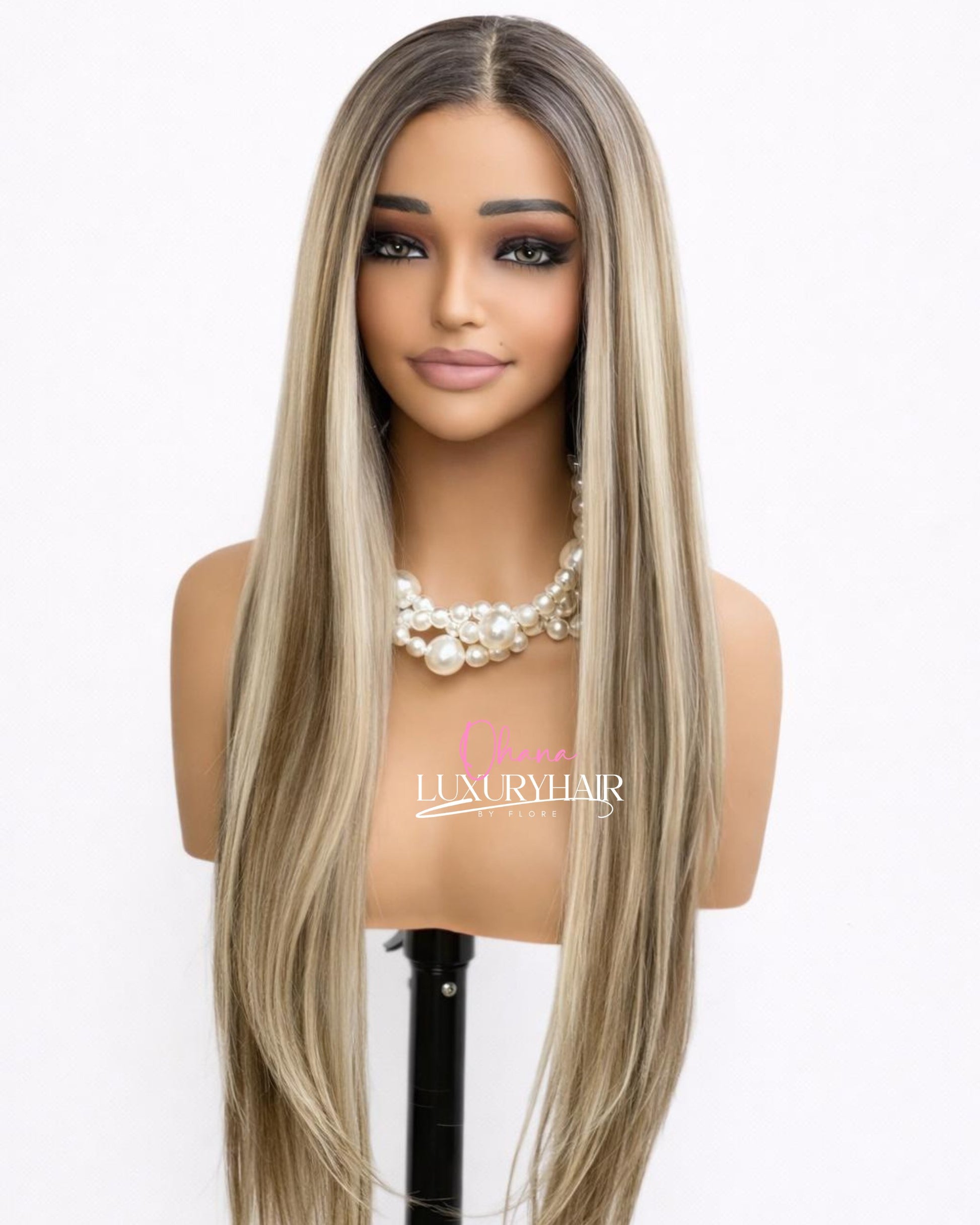 Avec sa longue chevelure lisse sublimée par un balayage blond cendré sur base brune, elle offre un rendu lumineux et naturel, parfait pour sublimer toutes les carnations.